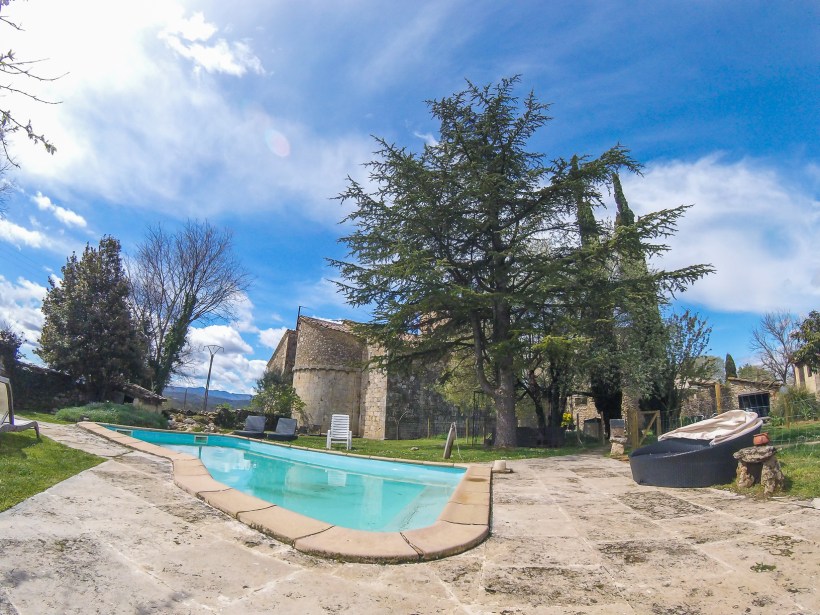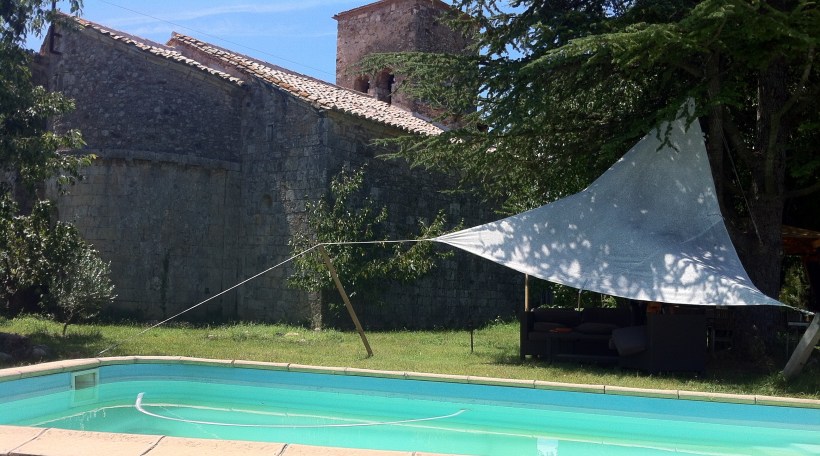 Gaudir des de la mateixa piscina d’una priviliegiada perspectiva de l’absis romànic del segle XIII. Arquitectura excelsa dissenyada a l’Alta Edat mitjana, just davant teu. Contemplar el Pirineu, al Nord, imponent i majestuosament blanc, a l’hivern. Al sud, i a l’est, l’Empordà: obertura i amplitud, extensos camps, llum i claror tramuntanal…